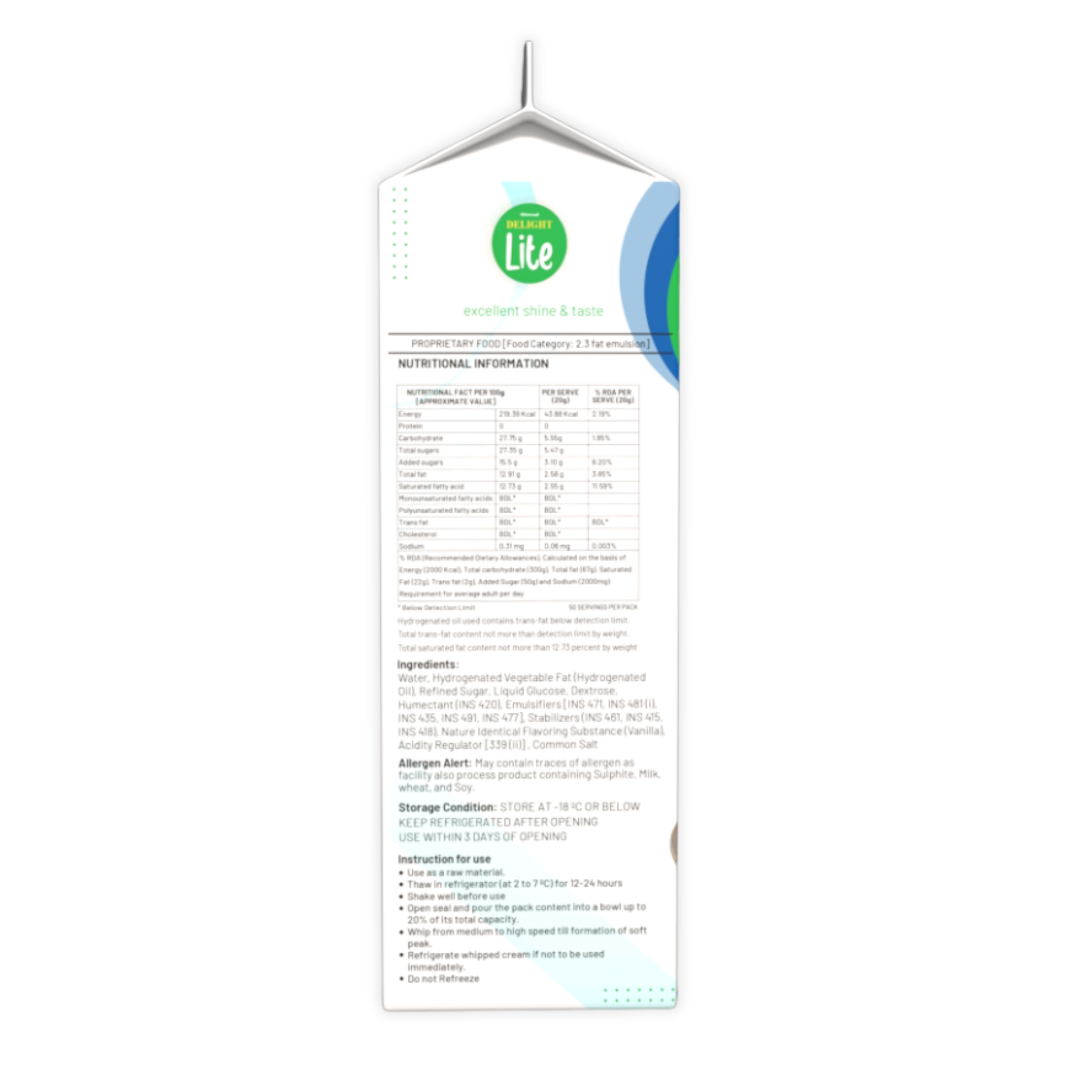 Shineroad Delight Lite brings the classic legacy of Delight with improved stability and acid tolerance. It delivers a rich mouthfeel and a neutral taste with hints of vanilla. A fine product, Delight Lite gives a delightful finish and keeps your desserts flavorfully intact.