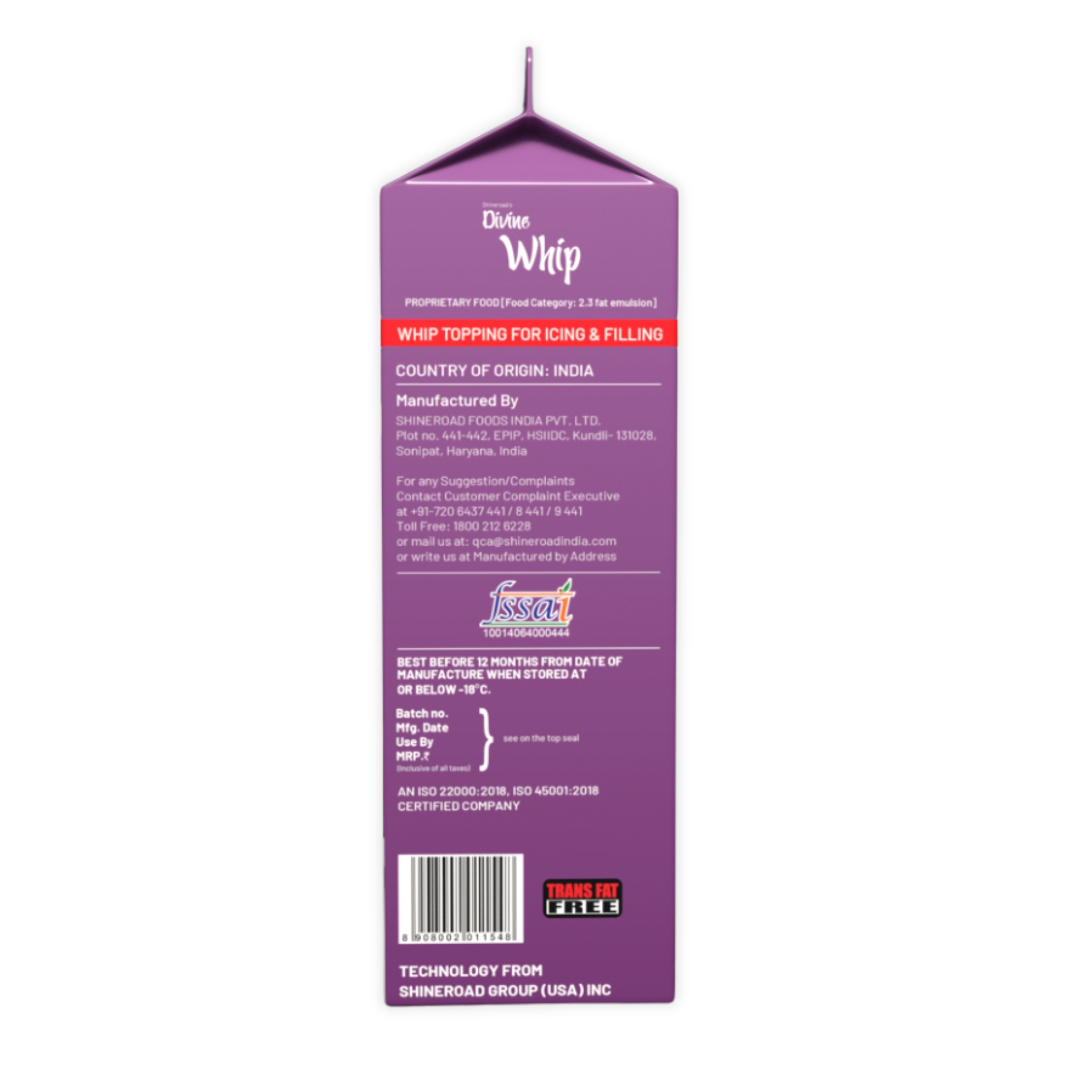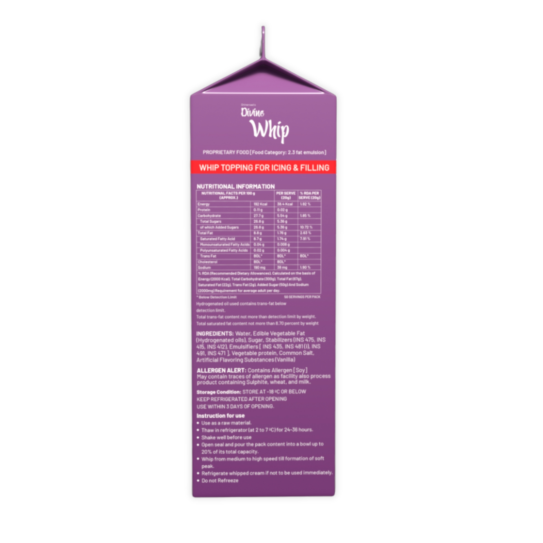 A versatile whip topping for your cakes and desserts, designed for Indian conditions! Shineroad Divine Whip is a value-for-money, quality product with superior yield and good stability in tropical temperatures.