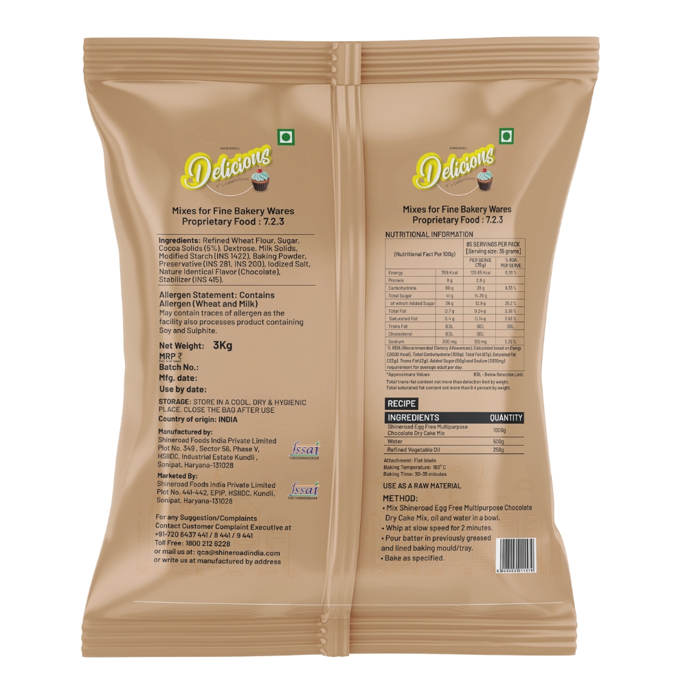Egg-Free Multipurpose Dry Cake Mix (Chocolate) Experience the versatility of our chocolate dry cake premix, perfect for creating muffins, bar cakes, and more. Enjoy the delightful chocolate flavor and effortless baking for any occasion!